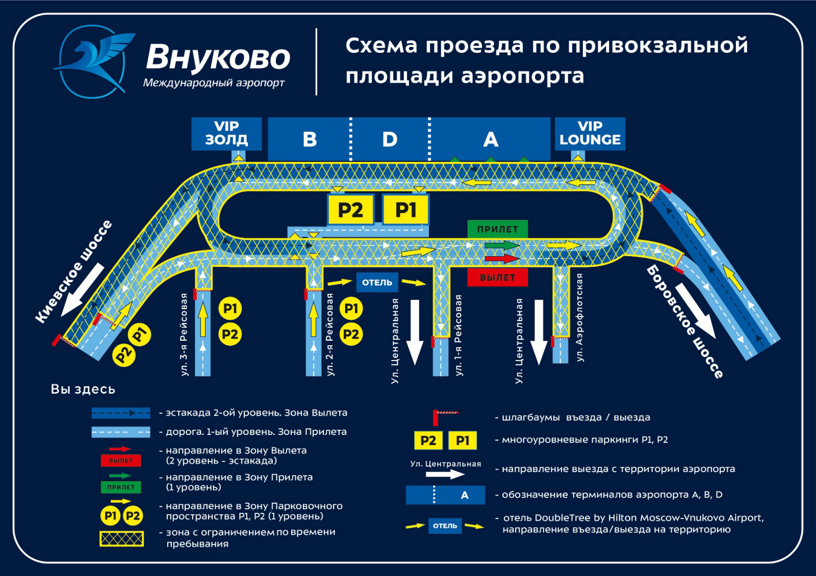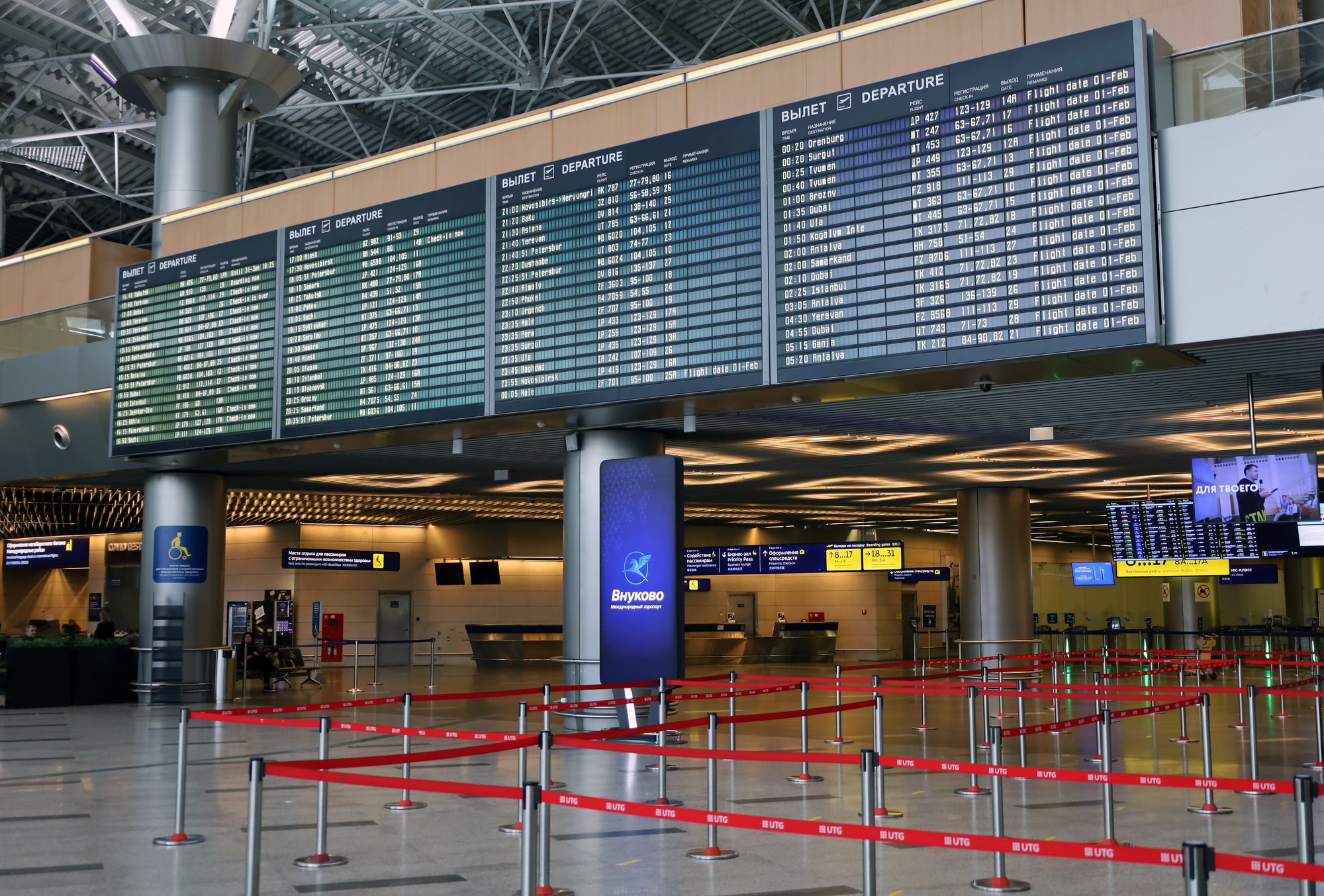Vnukovo International Airport is one of Russia's largest air transport hubs. Vnukovo serves over 170,000 flights operated by domestic and international carriers every year. Our route network covers the entire territory of Russia, as well as neighbouring countries, Europe, Asia and Africa.