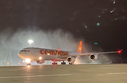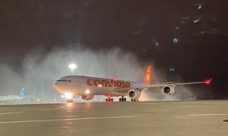 On May 15, Vnukovo International Airport and Conviasa Airlines summed up the results of their first year of cooperation. To mark this event, the aircraft which arrived on this day from the capital of the Bolivarian Republic, Venezuela, was welcomed with full honors at Vnukovo Airport with a water salute. The official delegation from Venezuela and the Conviasa passengers were greeted with flowers and souvenirs. Congratulatory audio messages were announced in the terminal.