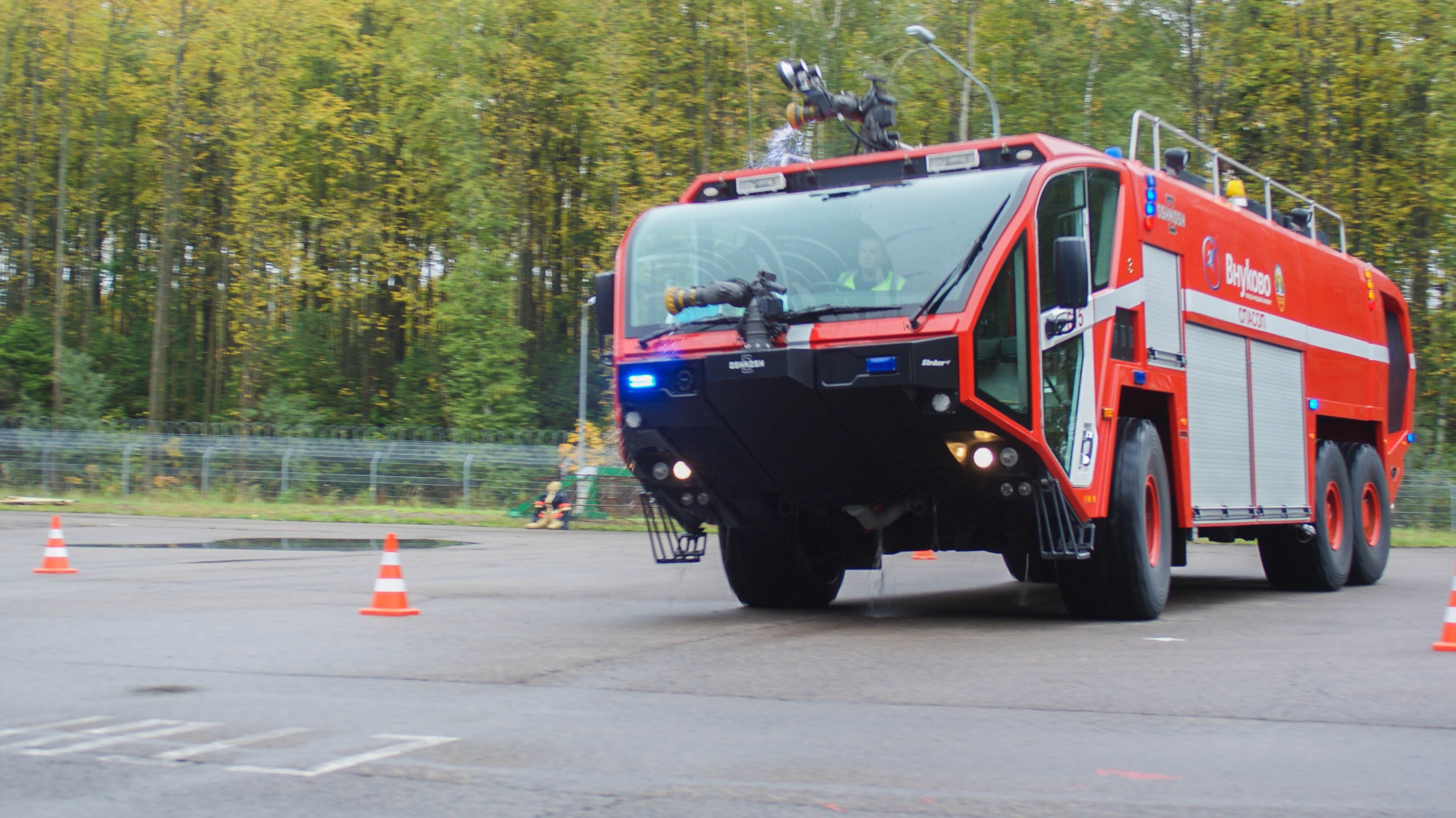 The drivers had to make a maneuver (hemisphere), drive into a tight enclosure and garage, hit a target with a water gun and knock down its cone. All exercises were performed on a modern airfield fire truck OSHKOSH Striker 6×6. Vnukovo has several emergency vehicles of this class. In addition to OSHKOSH Striker 6×6, the airport has the latest generation of the Rosenbauer Panther 6×6 fire trucks. The speed of these special vehicles can go up to 130 km/h. Thanks to a unique configuration, these heavyweight vehicles can move smoothly at high speed and reach any point of the airport in the shortest time possible. No other airport in Russia has a similar fleet of airfield fire trucks.