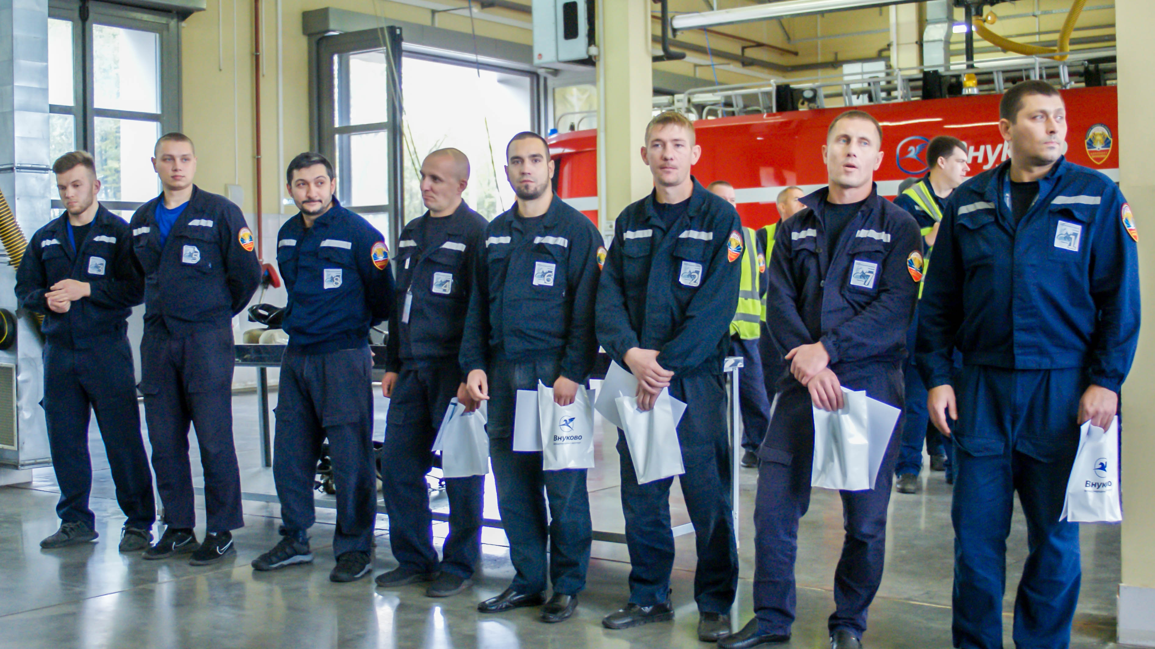 Competition site for rescuers and drivers of Aircraft Rescue & Fire Fighting Service (ARFFS) was deployed at the emergency station on the territory of Vnukovo airport. Eight rescuers and eight airfield fire truck drivers demonstrated their skills for the right to become the best. The competitions were held in the form of exercises, which means the conditions were as close as possible to real life. Participants had to put out a simulated fire, evacuate an injured person (the rescue was carried out with a dummy), and cut the steel bars with special hydraulic shears. The average time to complete all stages of the competition was less than three minutes.