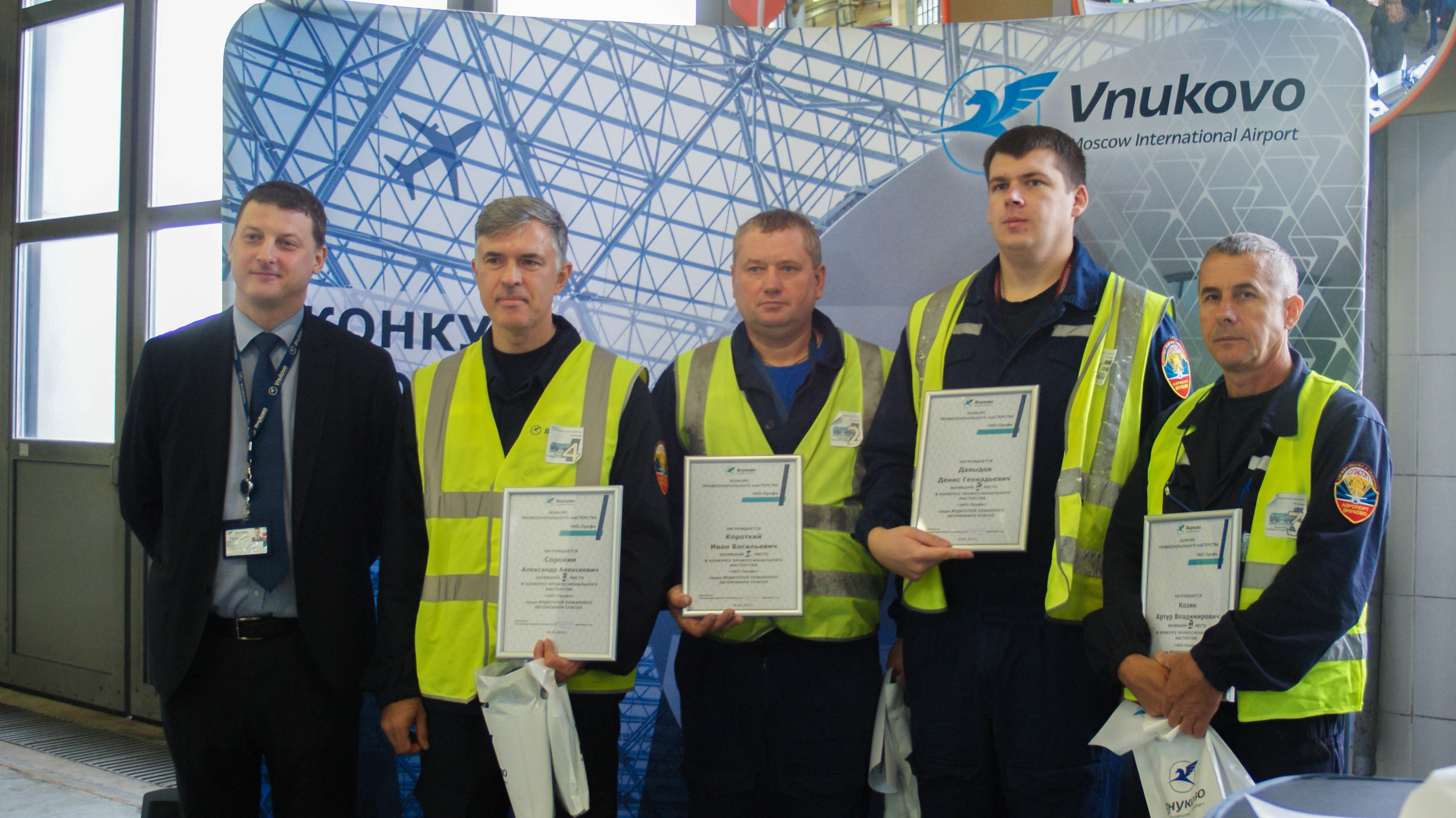 The first competition was held on the airfield site among ten dump truck drivers of the Airfield Maintenance and Supply Service. The participants skillfully followed the designated route, consisting of five stages. It was extremely important to feel vehicle dimensions and avoid the obstacles. Igor Danilovsky, took the first place, Yuri Kimishkin — became second, Nikolai Komarov and Alexander Shchekoturov both shared the third place. «It is important to always strive for excellence in everything. VKO — Profi competitions help to improve skills and add thrill to life and work. I’m definitely participating again next year. I think this is a good and useful practice, ” said Igor Danilovsky, winner of the competition.