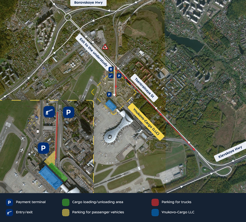 The transport of Vnukovo-Cargo LLC clients who send/receive cargo is located on the territory of the Vnukovo-Cargo LLC cargo yard and the adjacent territory without pricing, subject to the provision of the following to the custodial service employee when leaving the Vnukovo-Cargo LLC cargo yard or parking service employee of Autodom LLC, whose workplace is located in a modular one-story building (spider in front of the entrance to the Vnukovo-Cargo LLC cargo yard) at 1 Vnukovo Airport, building 20, room 1, phone: +7 (909) 927-69-39: