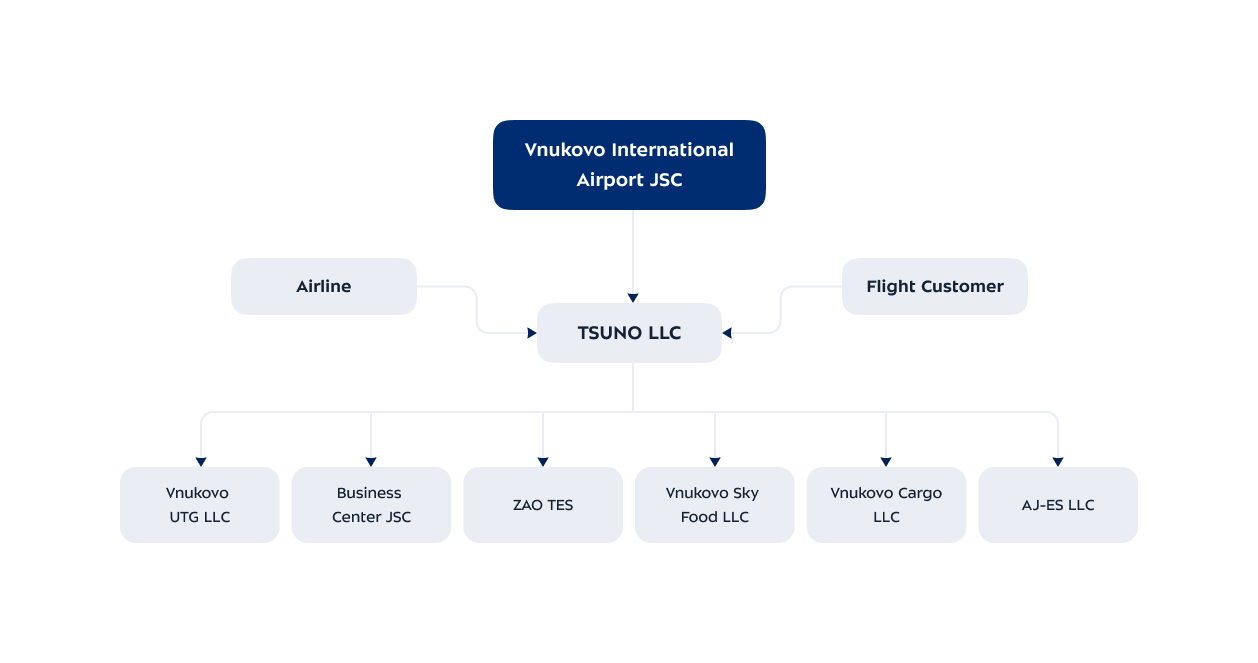 Is the managing company of the Vnukovo Airport Terminal. It is also responsible for calculating basic AIP tariffs, ensuring aviation security and emergency response at all facilities, leasing industrial and office premises and equipment. |