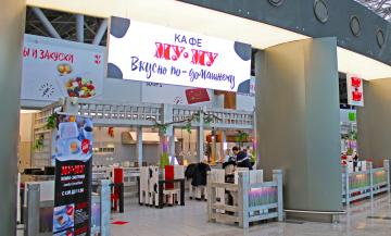 В кафе «МУ-МУ» предлагается широкий выбор свежих салатов, мяса, курицы, рыбы и супов. Шашлык, пельмени и блины по-прежнему популярны в России. На десерт можно взять морс и торт с чаем или кофе. Среди напитков — ягодные соки и вина. Блюда уже приготовлены и представлены на линии раздачи. В основе обширного меню кафе «МУ-МУ», состоящего более чем из 200 позиций, любимые, знакомые с детства блюда, которые постоянно обновляются. Четыре раза в год вводятся новинки из сезонных продуктов — их превосходное качество нельзя не использовать, чтобы порадовать гостей летом гарнирами из свежих овощей и десертами из ягод, а осенью — фруктовыми пирогами.