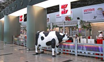 У входа гостей встречает большая добродушная корова — символ заведения.