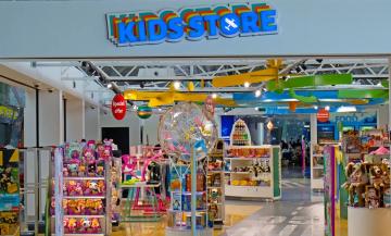Магазин в котором представлены товары для детей: игрушки, продукты питания, одежда, очки.