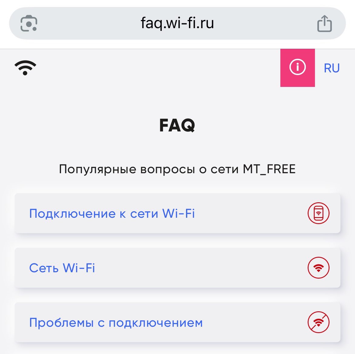 В разделе FAQ Вы найдете ответы на часто задаваемые вопросы о сети MT_FREE и о дополнительных возможностях работы с ней, также сможете связаться со службой технической поддержки сети.