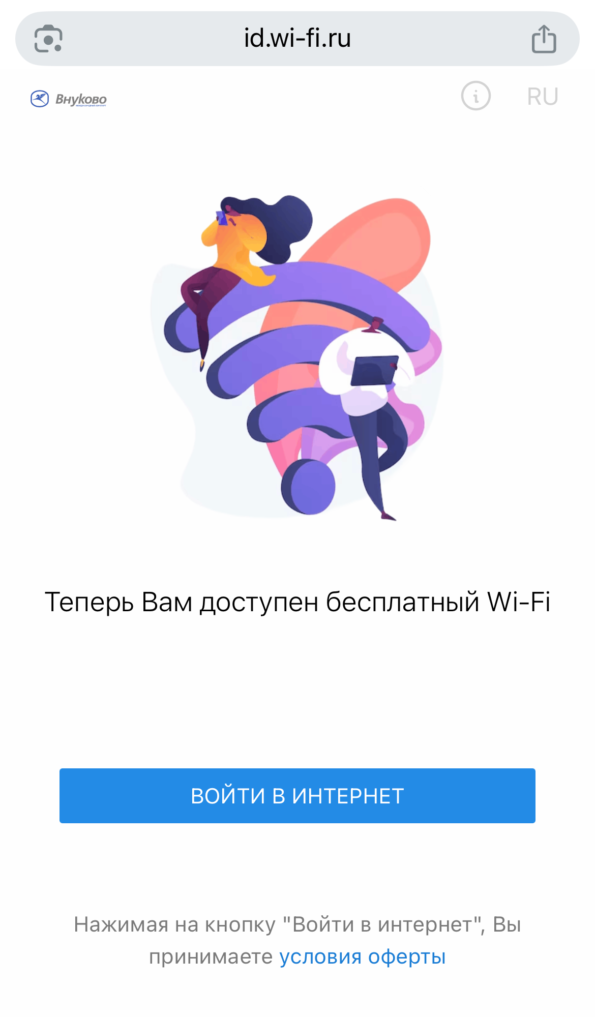 На территории терминала A Международного аэропорта Внуково для пассажиров и посетителей доступна бесплатная сеть Wi-Fi, которая позволяет быстро и удобно подключиться к интернету с мобильных устройств, ноутбуков и планшетов. Для выхода в сеть, пожалуйста, воспользуйтесь пошаговой инструкцией по подключению.