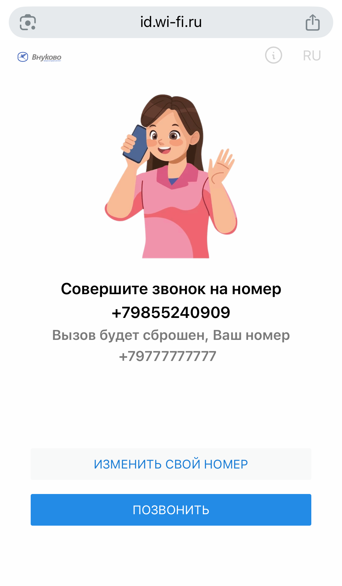 После звонка номер будет подтвержден, и Вы получите доступ к бесплатному интернету. Нажмите на кнопку «Войти в интернет»: