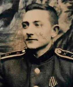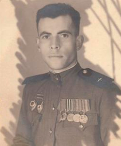 Родился в 1922 г. Ушел на войну в 19лет. Служил во 2-й стрелковой дивизии НКВД особого назначения. Участвовал в боевых действиях на Курской дуге, под Сталинградом, 2-м Белорусском фронте в должности зам. ком. взвода. Вернулся с фронта в декабре 1944 года после ранения. Награды: Кавалер ордена Отечественной войны I степени, Ордена славы III степени, Медали «За оборону Москвы», «За победу над Германией в Великой Отечественной Войне 1941–1945 гг.».