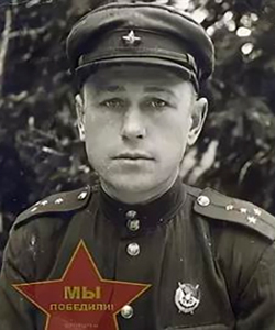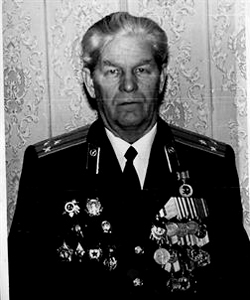 Родился 13.03.1924 Командир танка Т-34, полковник. Боевой путь: от Москвы до Берлина. Награды: орден Красной Звёзды, орден Отечественной Войны, медали «За отвагу», «За боевые заслуги», «За взятие Кенигсберга», «За победу над Германией» и т. д.