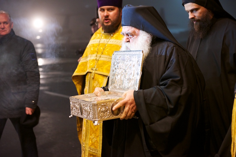 Реликвия была доставлена во Внуково-3 специальным рейсом из греческого города Салоники.