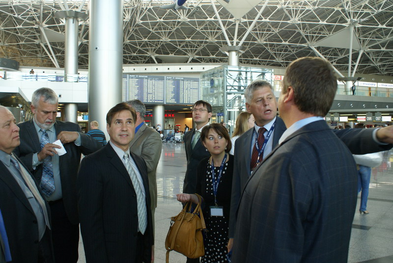 Для делегации также была проведена экскурсия по крупнейшему в Восточной Европе пассажирскому терминалу – терминалу А аэропорта Внуково, которая началась с уникальной подземной железнодорожной станции, куда прибывают поезда Аэроэкспресса. Экскурсия продолжилась осмотром зала прилета, зоны выдачи багажа, и трансферной зоны, где представители аэропорта Внуково рассказали об организации обслуживания трансферных пассажиров. В частности о том, что терминал А имеет сквозное разделение на две зоны – для обслуживания пассажиров внутренних и международных рейсов, что помогает оптимизировать трансфер пассажиров. В отличие от многих аэропортов России и Европы в терминале А аэропорта Внуково пассажир, прилетевший международным рейсом и следующий затем в другие города России, сможет в этом же терминале перейти в зону внутренних рейсов, причем, такой переход займет не более 15 минут.