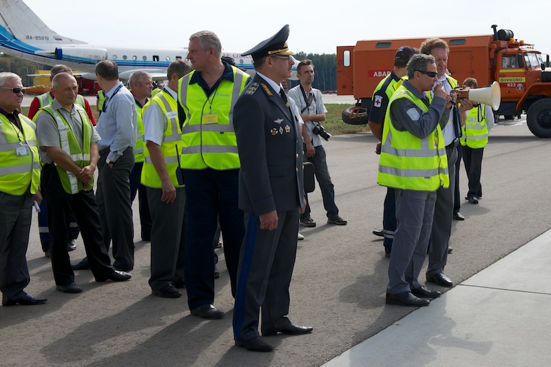 Руководил учениями заместитель генерального директора ОАО «Аэропорт Внуково» Сергей Николаевич Солнцев. В качестве наблюдателей и гостей были приглашены представители Ространснадзора, Росавиации, Минтранса РФ, службы ПАСОП аэропортов Шереметьево, Домодедово и авиакомпании «Трансаэро», Управление по ЗАО Главного управления МЧС России по городу Москве, линейный отряд МВД России при аэропорту Внуково, ФСБ России, а также руководство аэропортового комплекса Внуково во главе с генеральным директором аэропорта Василием Егоровичем Александровым.