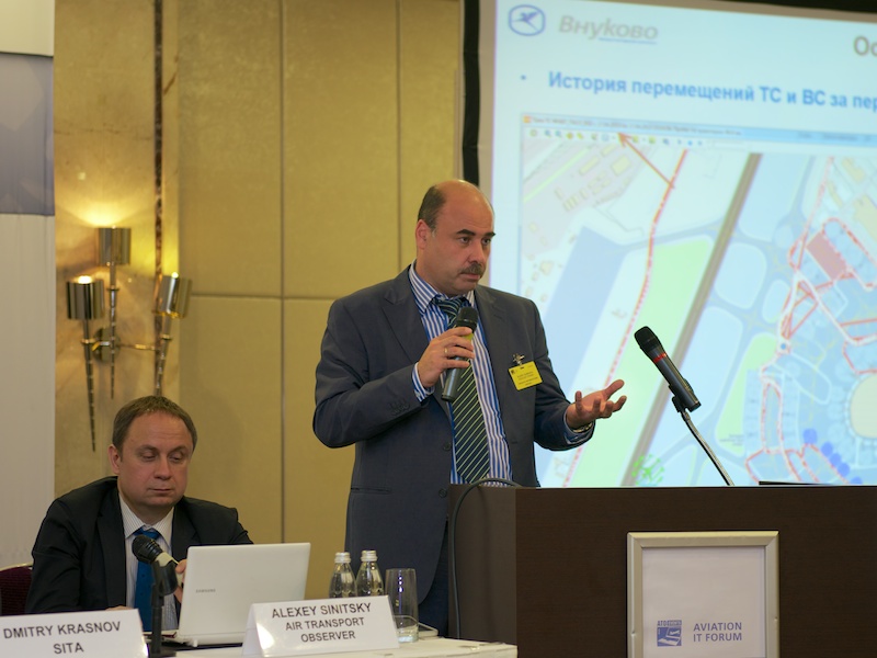 В этом году с докладом «Мониторинг положения техники и ВС на перроне с контролем исполнения СПП и заданий по наземному обслуживанию в соответствии с требованиями приказа Минтранса 285» выступил ИТ Директор ОАО «Международный Аэропорт «Внуково» Алексей Гуревич.
