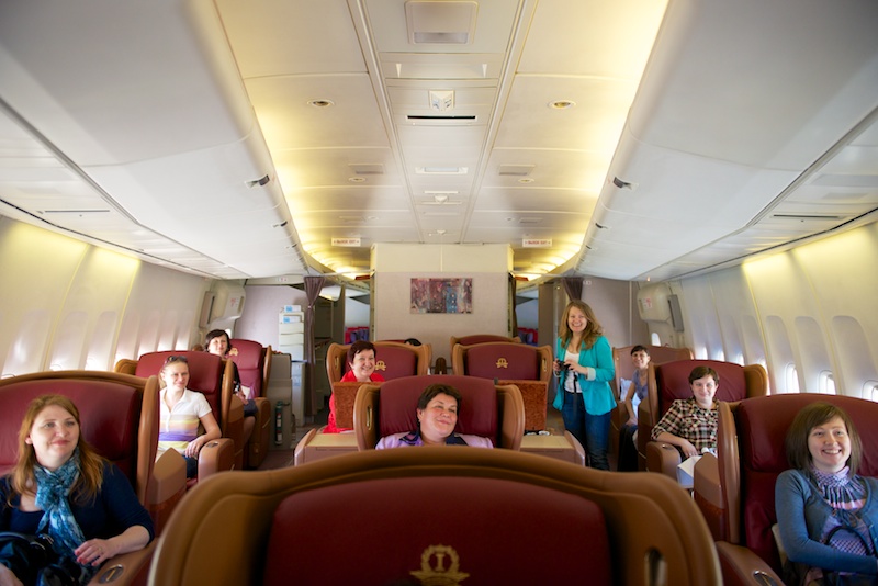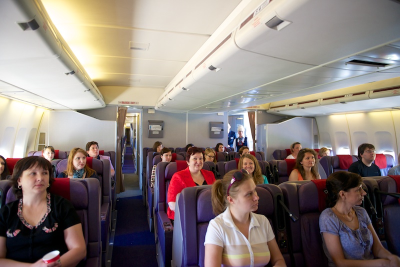 Участники экскурсии также поднялись в Boeing 747-400 авиакомпании «Трансаэро», где для них провели презентацию сервиса на борту самолета в эконом-, бизнес-классе и классе «Империал», а также рассказали о сезонном расписании авиакомпании и новых предложениях, а также провели дегустацию бортового питания.