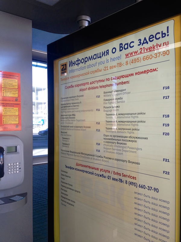 Платить за звонки с этих телефонных аппаратов пассажирам не придется: звонки как на стационарные, так и на мобильные номера любых регионов России совершенно бесплатны. Для вызова абонента достаточно снять трубку и набрать его номер (8-[код города]-[номер телефона]). Для удобства пассажиров в память телефонов уже занесены номера справочных и оперативных служб аэропорта Внуково: call-центр, медпункт, служба розыска багажа, линейный отдел полиции и другие.