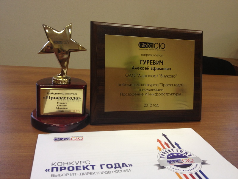 Всего в номинации приняли участие 18 проектов. Золотая медаль была вручена директору по ИТиТК ОАО «Аэропорт Внуково» Алексею Гуревичу.