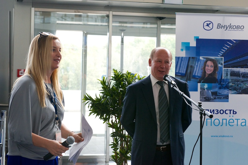 Перед началом торжественного мероприятия с приветственной речью к собравшимся обратился генеральный директор ОАО «Аэропорт Внуково» Василий Егорович Александров. Он поздравил пассажиров и участников споттинга с праздником и напомнил, что аэропорт Внуково — это старейшее авиапредприятие России, которое имеет богатую историю неразрывно связанную с историей всей страны. «Сегодня многотысячный коллектив Внуковского аэропортового комплекса заканчивает полную реконструкцию всего аэропортового и аэродромного хозяйства. Введена в эксплуатацию первая очередь современного пассажирского терминала А, где мы сейчас с вами находимся, к нам приходят новые авиакомпании-партнеры с мировыми именами. Я рад приветствовать большое количество участников второго официального споттинга, уверен, что фотографам захочется запечатлеть не только завораживающие кадры взлетов и посадок воздушных судов „ЮТэйра“, „Люфтганзы“, „Трансаэро“, „Турецких авиалиний“, „Якутии“ и других наших партнеров, но и сделать фотографии в новом терминале, поверьте, здесь много красивых мест. Надеюсь, вы получите удовольствие от пребывания в аэропорту Внуково», — сказал Василий Егорович.