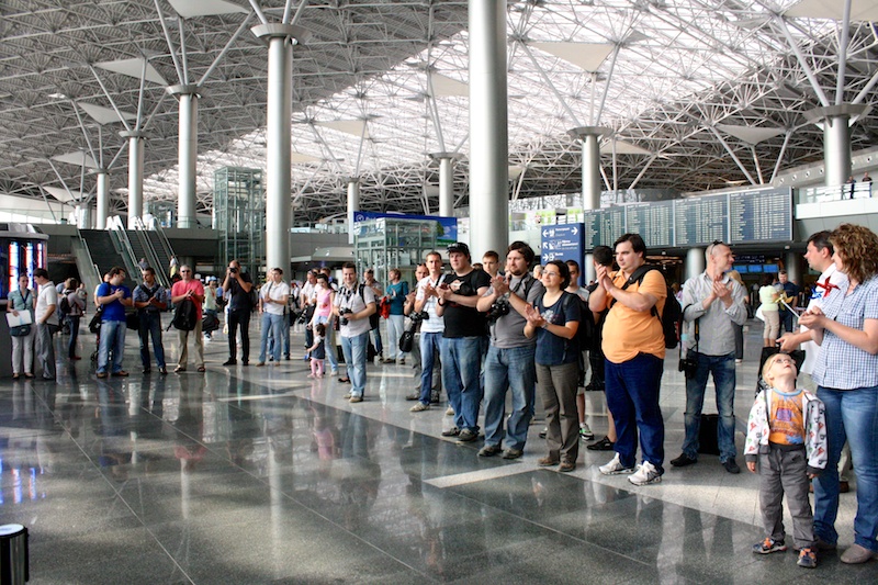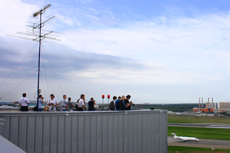 В то время как пассажиры наслаждались выступлениями и подарками, на аэродроме и на крыше почтово-грузового комплекса аэропорта Внуково проходило еще одно интересное мероприятие — споттинг (споттеры — это люди, посвятившие себя фотографированию воздушных судов и аэропортов).