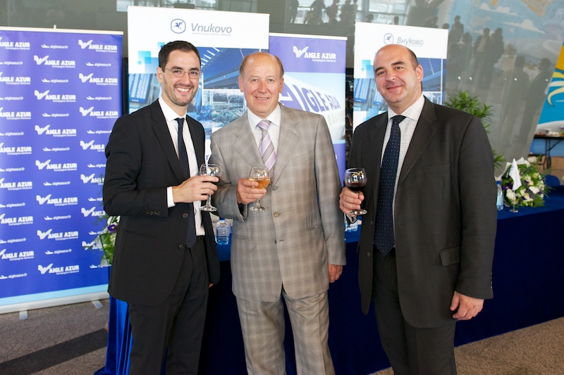 В торжественной церемонии встречи первого рейса из Парижа и посвященном этому событию пресс-брифинге приняли участие генеральный директор ОАО «Аэропорт Внуково» Василий Александров, главный исполнительный директор авиакомпании Aigle Azur Мезьян Иджеруиден, и первый заместитель генерального директора авиакомпании «Трансаэро» Дмитрий Столяров.
