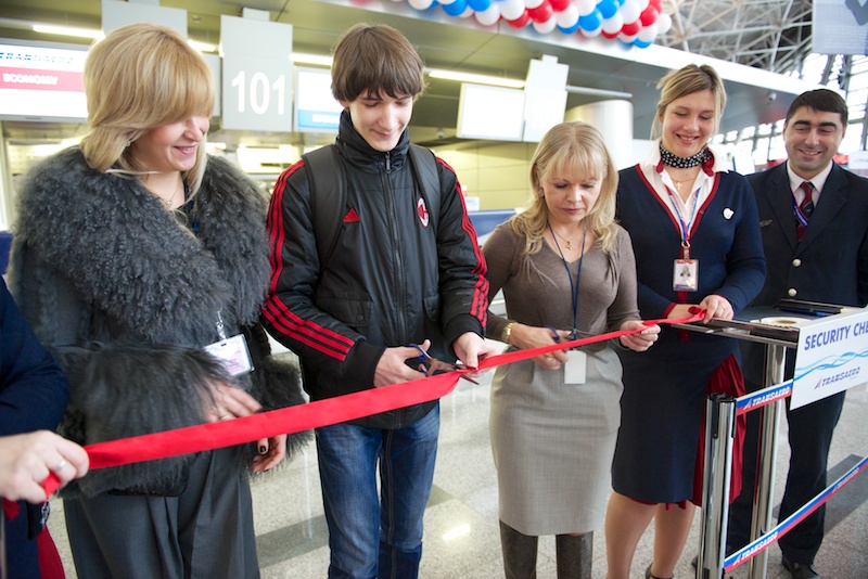 В торжественной церемонии, посвященной первому рейсу в Лондон, приняли участие представители авиакомпании «Трансаэро» и аэропорта Внуково.