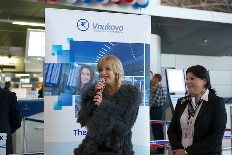 Начальник пресс-службы Внуково Елена Крылова от имени руководства аэропорта также поздравила пассажиров первого рейса авиакомпании «Трансаэро» в Лондон. «Аэропорт Внуково сделает все возможное, чтобы пассажиры чувствовали себя у нас максимально комфортно. Мы благодарны нашим партнерам — авиакомпании „Трансаэро“ за плодотворное сотрудничество и новые для нашего аэропорта направления: Лондон, Париж, Рим, Милан, Венецию и многие другие города», — подчеркнула она и напомнила, что уже в декабре этого года будет введен в эксплуатацию второй пусковой комплекс первой очереди терминала А, что позволит Внуково стать одним из самых лучших аэропортов мира.