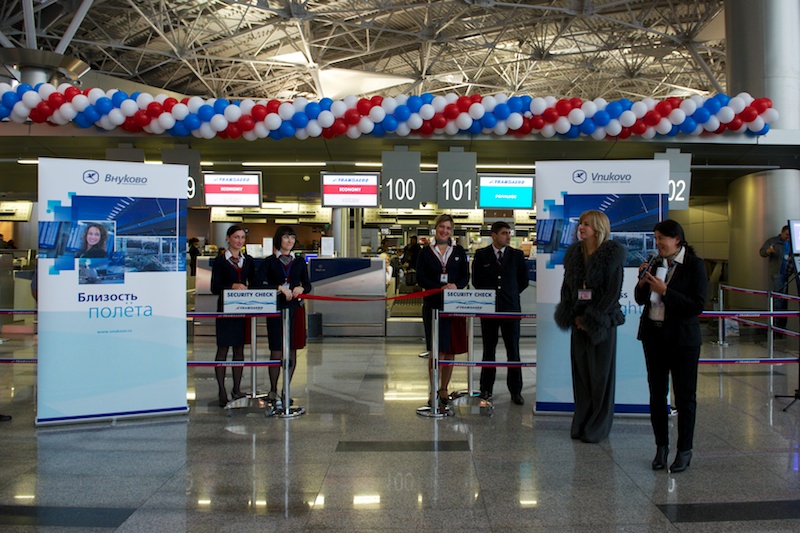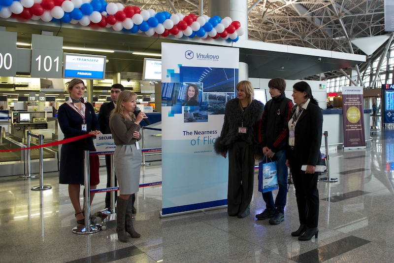«За полгода сотрудничества авиакомпании „Трансаэро“ с аэропортом Внуково мы убедились в высоком уровне предоставляемых услуг, которые позволяют создать комфортные условия для наших пассажиров. Авиакомпания летает из трех аэропортов Москвы и нам есть, с чем сравнивать. Мы рады нашему сотрудничеству и готовы к его дальнейшему расширению и развитию. От лица руководства авиакомпании „Трансаэро“ желаю аэропорту Внуково процветания, активного роста и новых пассажиров», — отметила в приветственном слове начальник службы организации пассажирских перевозок авиакомпании «Трансаэро» Ирина Фролова.