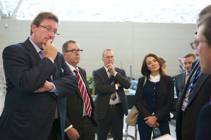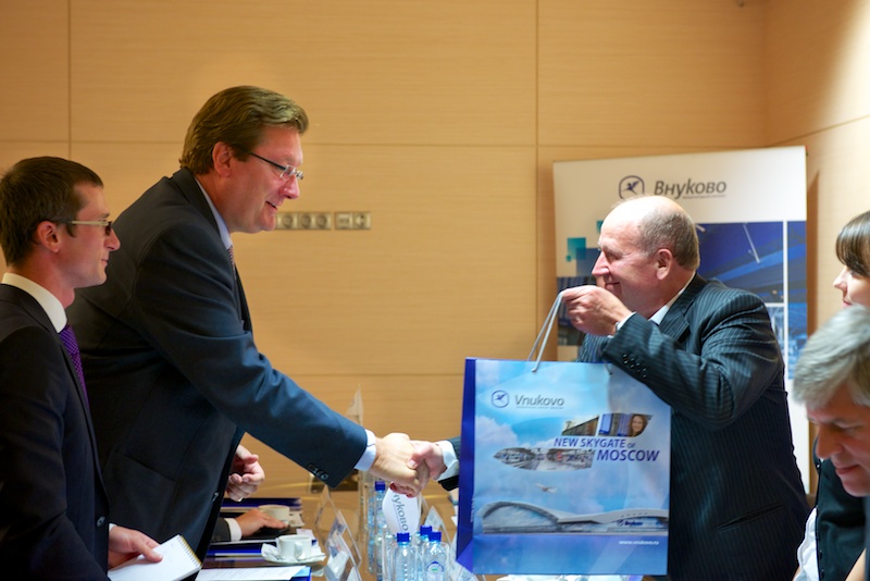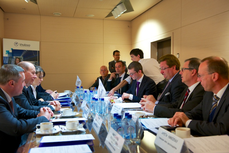 В составе делегации Дюссельдорфа прибыли Обербургомистр города господин Дирк Эльберс, директор Департамента экономического развития мэрии господин Уве Керкманн, генеральный директор аэропорта Дюссельдорф господин Кристоф Блюм и другие высокопоставленные гости. В аэропорту Внуково их встретили начальник управления международных связей Департамента внешнеэкономических и международных связей города Москвы Алексей Мешков, генеральный директор ОАО «Аэропорт Внуково» Василий Александров и другие представители руководства аэропорта.
