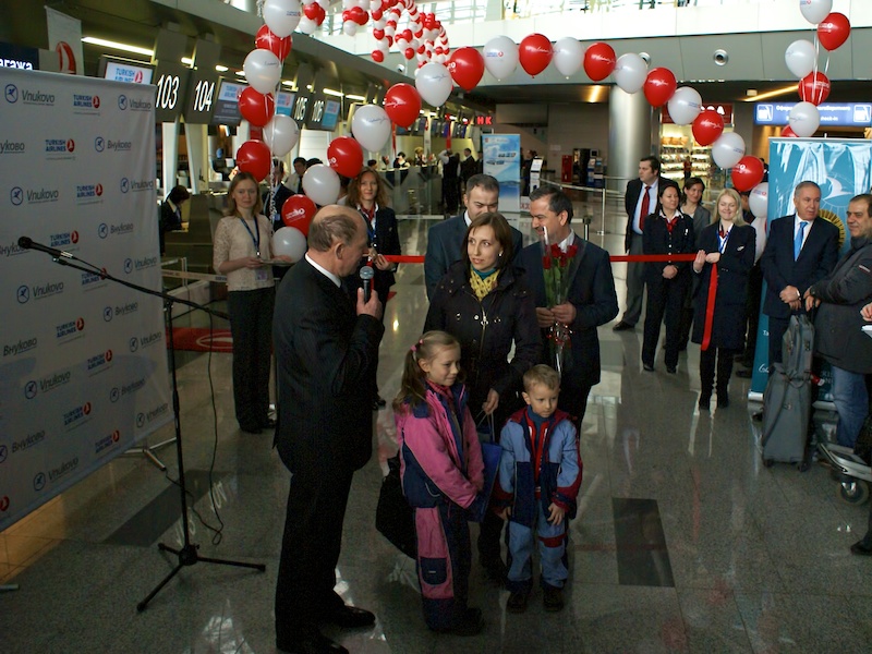 Встреча первого рейса прошла в торжественной обстановке. Пассажиры самолёта A330, едва войдя в пассажирский терминал А, попали под прицелы фото- и видеокамер. Пассажиров с прибытием поздравили генеральный директор ОАО «Аэропорт Внуково» Василий Александров, глава представительства авиакомпании Turkish Airlines в РФ Мефаил Дерибаш и старший вице-президент Turkish Airlines Хульки Балакбалар.
