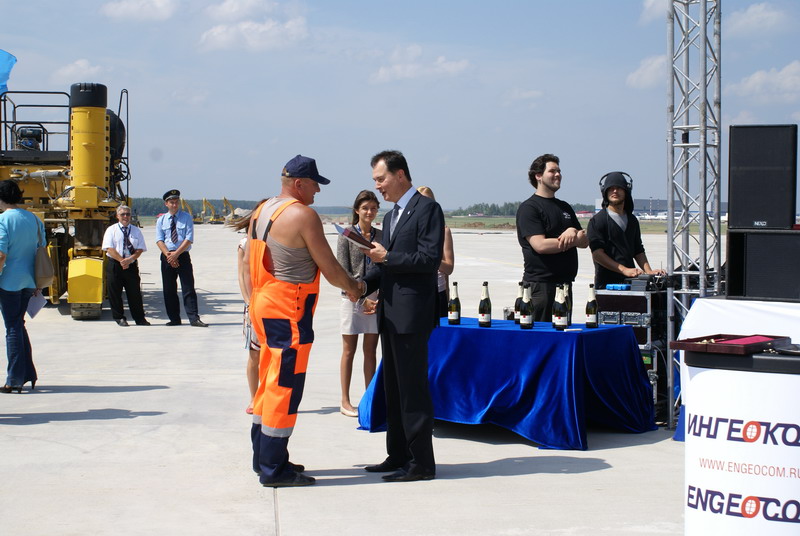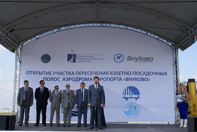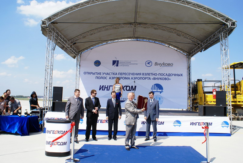 После завершения официальной части мероприятия, Президент ЗАО «Объединение «Ингеоком» Александр Рудяк и Генеральный директор ЗАО «Трансстроймеханизация» Борис Сакун передали руководству аэропорта Внуково символический ключ от «большой крестовины».