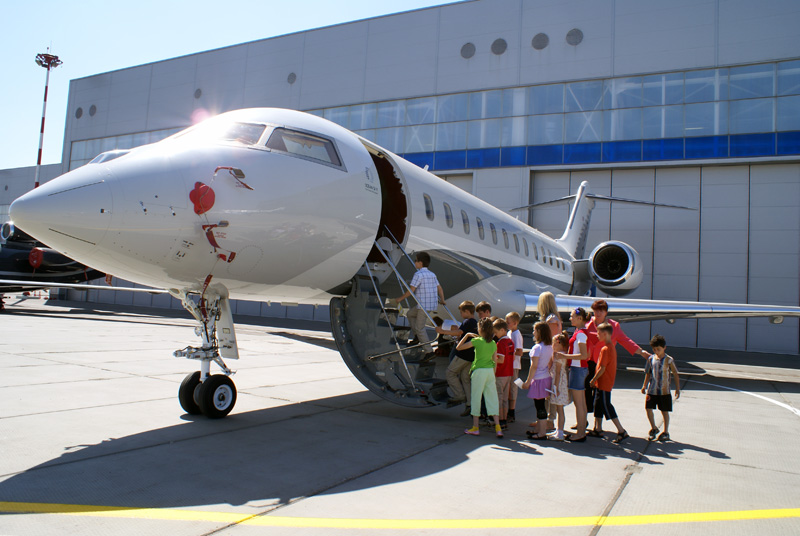 После этого экскурсия переместилась в бизнес-терминалы Внуково-3. Внуково-3 является крупнейшим центром бизнес авиации в России и восточной Европе с собственной развитой инфраструктурой, двумя VIP терминалами, автомобильными парковками и благоустроенной охраняемой территорией. Перронный и ангарный комплексы позволяют производить обслуживание и размещать одновременно более 250 воздушных судов различных типов и модификаций.