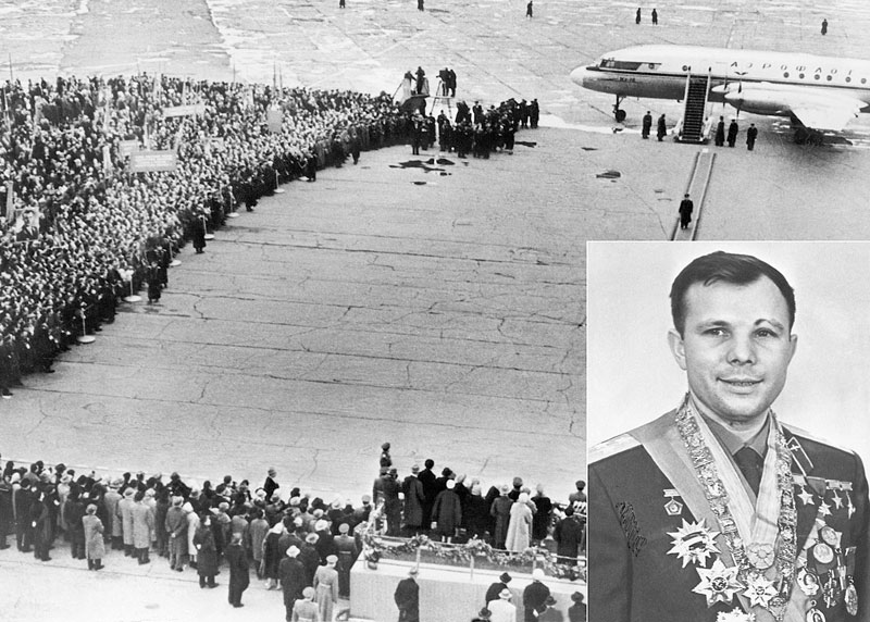 Идея встречи космонавта в Москве принадлежала Первому секретарю ЦК КПСС Никите Хрущеву. В аэропорту Внуково Юрия Гагарина приветствовало все партийное руководство, журналисты и огромное количество москвичей и гостей столицы. За трансляцией телеканала «Евровидение» с места события следили миллионы телезрителей во всем мире.