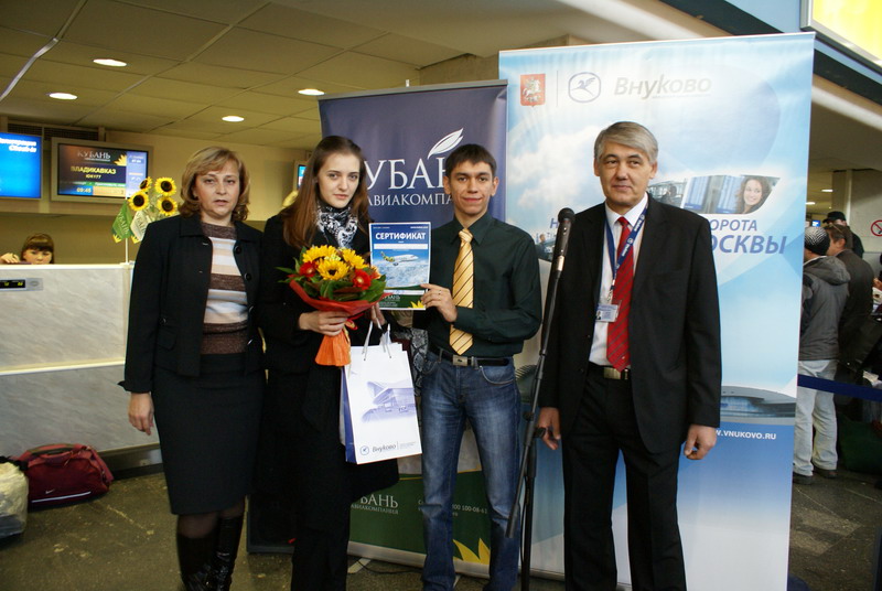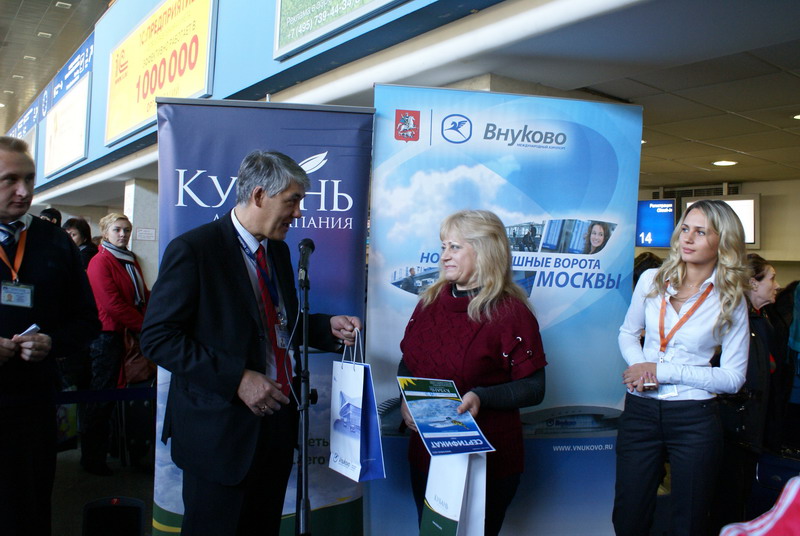 После начала регистрации на рейсы Москва – Владикавказ и Москва – Минеральные воды в терминале внутренних авиалиний аэропорта Внуково состоялось награждение первых зарегистрировавшихся пассажиров. Ими стали гостья столицы из Владикавказа Юлия Севостьянова и москвичка Светлана Бачинская. От авиакомпании и аэропортового комплекса Внуково им были вручены памятные подарки.