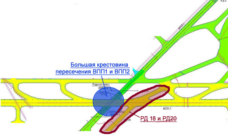 В этот же период ЗАО «Объединение «ИНГЕОКОМ», как генеральный подрядчик проекта, должен был построить две рулежные дорожки – РД-18 и РД-20, которые позволят упростить схему руления для воздушных судов в торец ВПП-2 для осуществления операций взлета-посадки с курсом 14 градусов. Однако эти работы завершены не были, поскольку РД-18 и РД-20 находятся на пересечении с действующей ВПП-1. С 15 апреля отправка и прием воздушных судов будут осуществляться только с укороченной ВПП-2 (рабочая длина 2030 метров). ВПП-1 закроется, после чего ЗАО «Объединение «ИНГЕОКОМ» сможет завершить работы по строительству РД-18 и РД-20 в рамках действующего контракта.