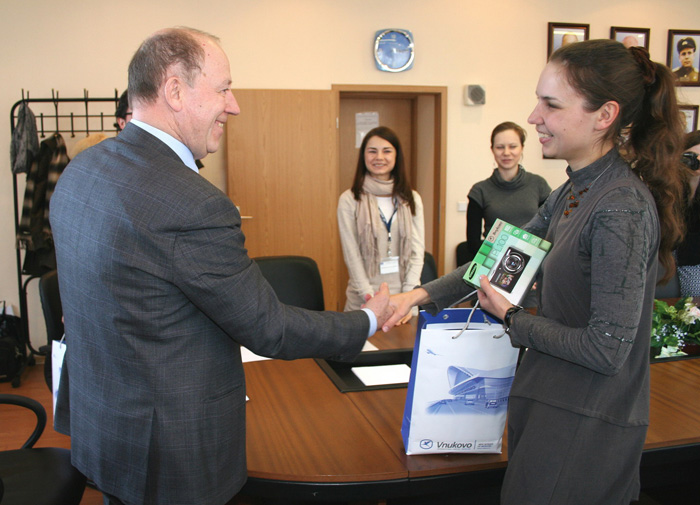 Но это еще не все. Руководство аэропорта Внуково приняло решение об учреждении дополнительного, специального приза. Его по праву заслужил Шмидт Артур Константинович из города Гинген (Германия, 46 лет), приславший особенно оригинальный логотип. Артур по специальности – графический дизайнер. Любит участвовать в различных творческих конкурсах и считает это своим хобби. К сожалению, у Артура не нашлось возможности прилететь в Москву на церемонию награждения, поэтому Специальный приз был вручен его представителю, Ольге Федоренко.