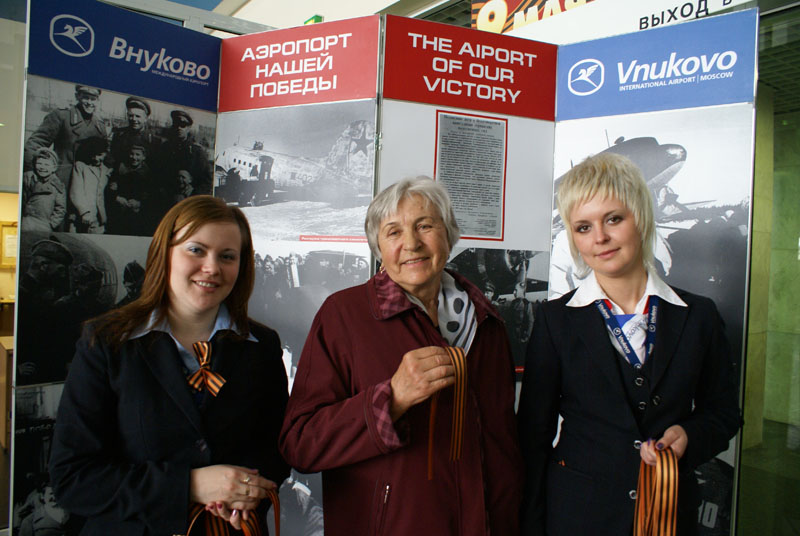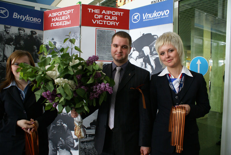 В эти дни аэропорт Внуково вновь присоединился к акции «Георгиевская ленточка», проходящей пятый год подряд под девизом «Я помню! Я горжусь!». Прибывающим в аэропорт пассажирам раздают черно-желтые ленты – символ Дня Победы.