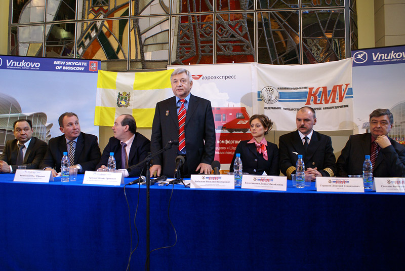 В терминале на Киевском вокзале состоялась совместная пресс-конференция руководства аэропорта Внуково и авиакомпании «Кавминводыавиа».