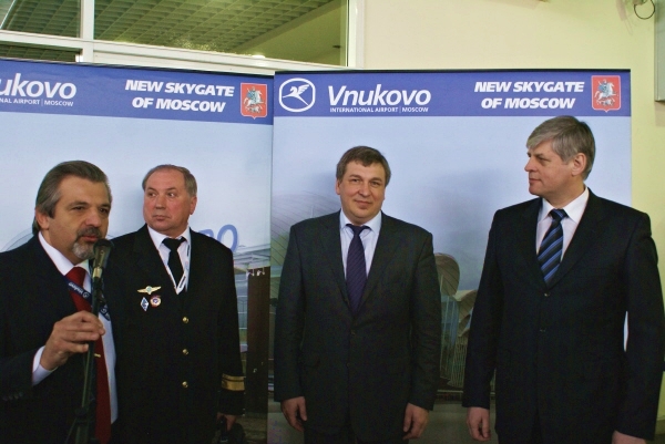 По прибытии первого рейса в аэропорту Внуково состоялась торжественная встреча пассажиров и брифинг для журналистов. В ходе мероприятия губернатор Костромской области Игорь Слюняев, прибывший в Москву в числе первых пассажиров рейса, отметил огромную значимость открытия воздушного сообщения между Москвой и Костромой. «Мы очень ждали этого рейса, он возобновился после пятнадцатилетнего перерыва, – сказал Игорь Слюняев. – Пока рейс выполняется два раза в неделю, а с июня частота увеличится до трех раз в неделю». Начальник аэровокзального комплекса ОАО «Аэропорт Внуково» Геннадий Прощикин, выступая на брифинге перед костромичами, пригласил всех воспользоваться маршрутной сетью аэропорта, включающей свыше 300 направлений регулярных и чартерных полетов. «Через Внуково вы можете продолжить путешествие по самым разным маршрутам, в особенности в курортные города России, ближнего и дальнего зарубежья», – сказал Геннадий Прощикин.