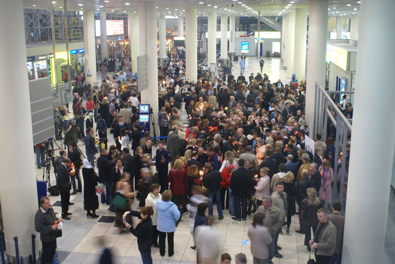За несколько часов до прибытия рейса в международном терминале аэропорта Внуково собирались представители епархий Русской православной церкви и верующие. Желающие прикоснуться к Благодатному огню, снисходящему в храме Гроба Господня в Иерусалиме, держали в руках лампады или обычные церковные свечи. Получить Благодатный огонь со Святой земли смогли и пассажиры, оказавшиеся в момент встречи делегации из Иерусалима в зале ожидания международного терминала.