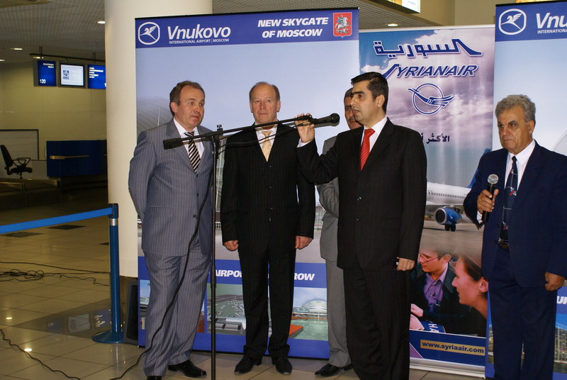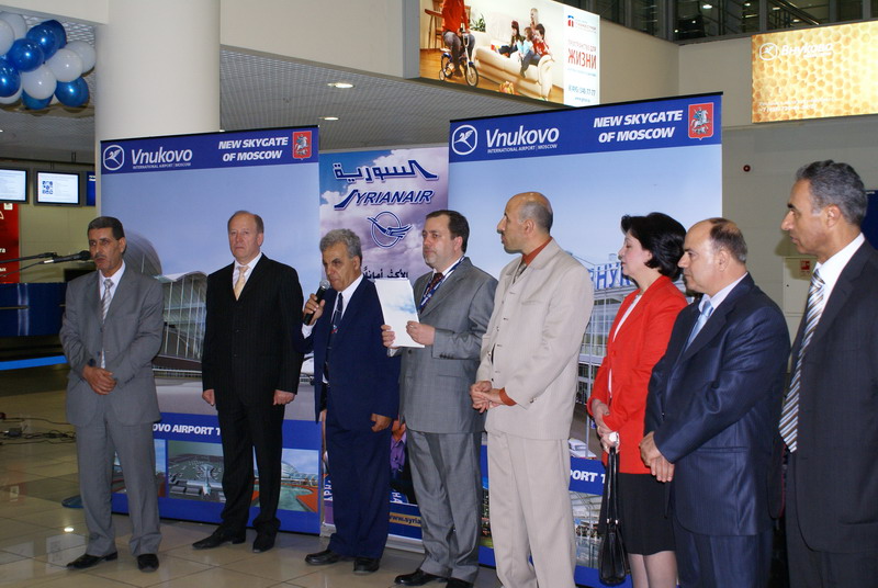 Перед началом регистрации на первый рейс Москва – Дамаск в международном терминале состоялся брифинг, в котором приняли участие заместитель министра транспорта Сирии г-н Сареа Раджех, генеральный директор ОАО «Аэропорт Внуково» Василий Александров, региональный директор авиакомпании Syrianair г-н Кедбан Насер, а также представители посольства Сирии в России и деловых кругов Сирии.