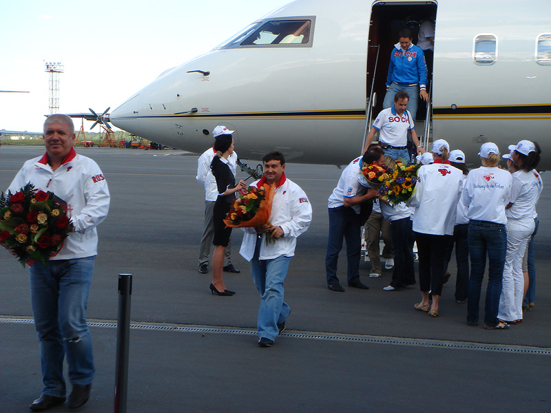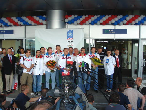 В рамках торжественной встречи состоялся брифинг для представителей средств массовой информации, в ходе которого Герман Греф поздравил российских граждан с победой Сочи в конкурсе на проведение зимних Олимпийских игр 2014 и поблагодарил всех за активную поддержку.
