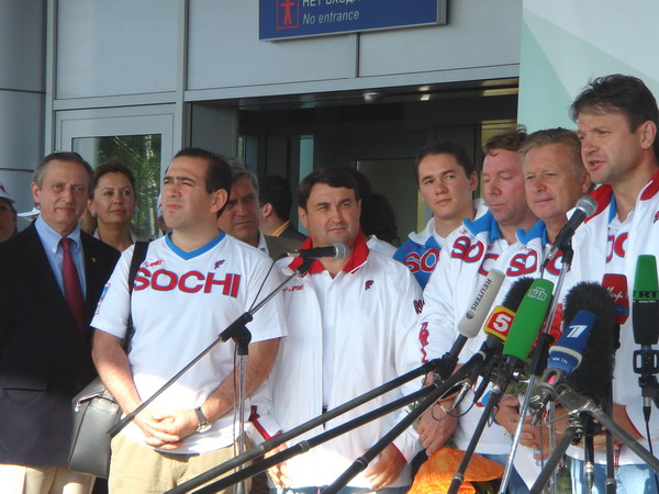 В составе делегации, которая на сессии МОК презентовала город Сочи, прибыли Министр экономического развития и торговли РФ Герман Греф, Министр транспорта РФ Игорь Левитин, Президент Олимпийского комитета России Леонид Тягачев, губернатор Краснодарского края Александр Ткачев, а также мэр Сочи Виктор Колодяжный.