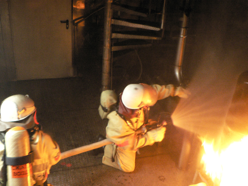 Кроме этого, в тренировочном огневом полигоне отработаны навыки ориентации, поиска и спасания людей в условиях плотного задымления, а также тушения различных очагов пожара.