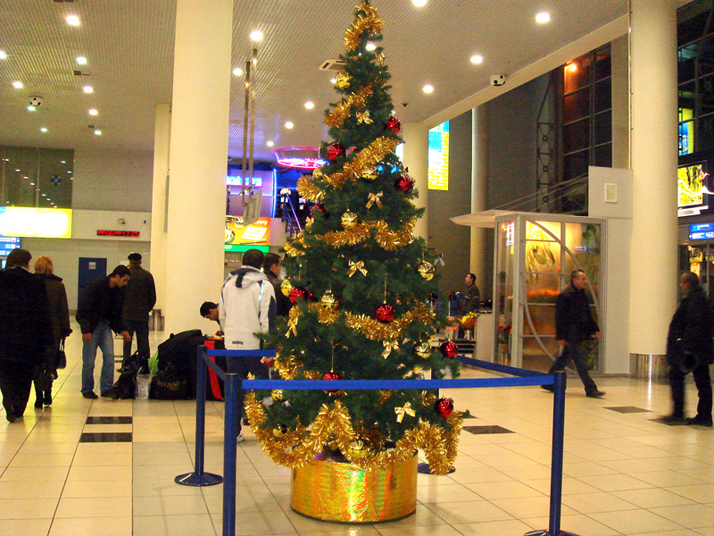 Для создания праздничного настроения традиционные атрибуты Нового года и сказочные персонажи будут встречать пассажиров на всем пути следования по аэропортовому комплексу. На привокзальной площади, при въезде в аэропорт, установлена 15-метровая новогодняя ель, декорированная гирляндами и игрушками. Еще одна ель, украшенная в красно-золотистые тона, встречает посетителей терминала международных линий.