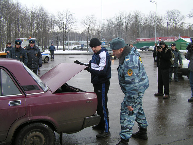 На третьем рубеже сотрудники транспортной милиции и САБ показали, как проводится проверка багажа перед погрузкой на воздушное судно и мероприятия при обнаружении запрещенных к провозу предметов /в конкретном случае – три гранаты РГД-5/. Во время прохождения четвертого рубежа защиты – предполетного досмотра, было проведено задержание владельца сумки, в которой обнаружены боеприпасы.