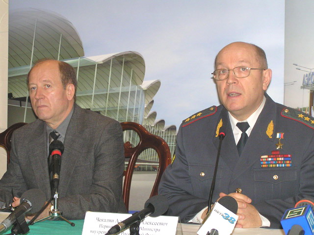 В беседе с представителями СМИ приняли участие: Первый заместитель Министра внутренних дел Российской Федерации генерал-полковник милиции А.А. Чекалин, начальник ДОПТ МВД России генерал-лейтенант милиции В.В. Захаренков, генеральный директор ОАО «Аэропорт Внуково» В.Е. Александров, директор по авиационной безопасности аэропорта - Г.М. Гончаров и другие заинтересованные лица.