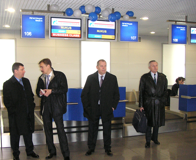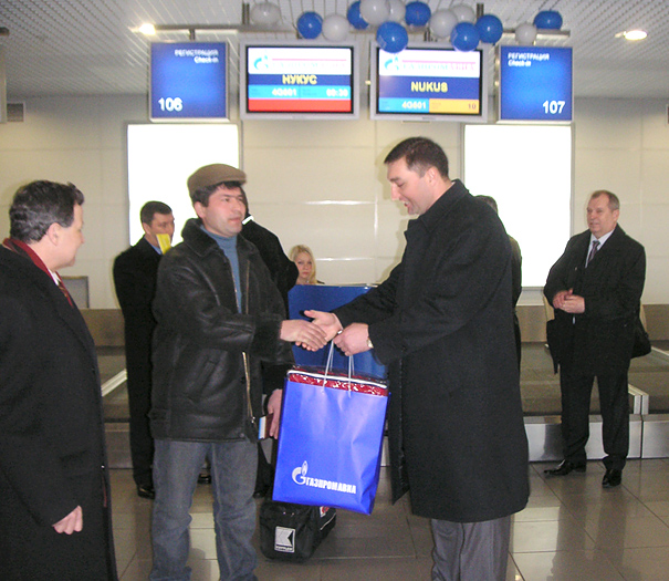 Перед началом регистрации на первый рейс Москва – Нукус в аэропорту Внуково состоялась торжественная церемония, в которой приняли участие заместитель генерального директора ОАО «Аэропорт Внуково» Сергей Солнцев, генеральный директор авиапредприятия «Газпромавиа» Андрей Овчаренко, генеральный директор ЗАО «Зарубежнефтегаз» Валерий Гулев.