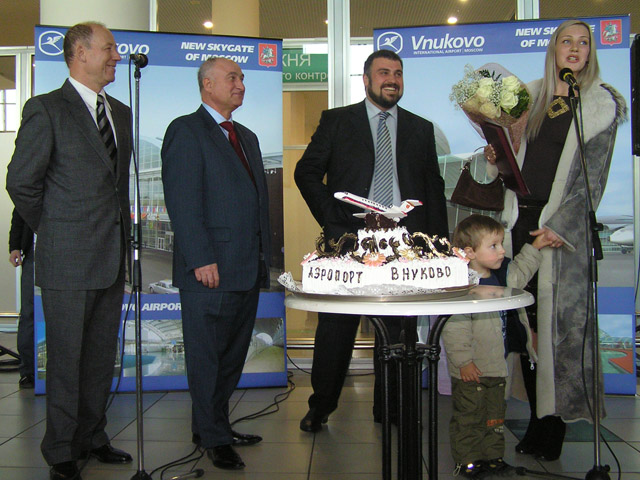 Трехмиллионным пассажиром аэропортового комплекса Внуково стала молодая жительница Харькова Ирина Сидая, прибывшая в Москву с сыном Данилой 2,5 лет рейсом авиакомпании «UTair». Ей были вручены ценные подарки и бесплатный сертификат на перелет в оба конца любого направления полетов авиакомпании «UTair».