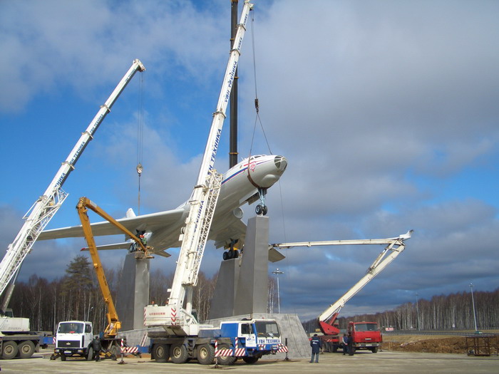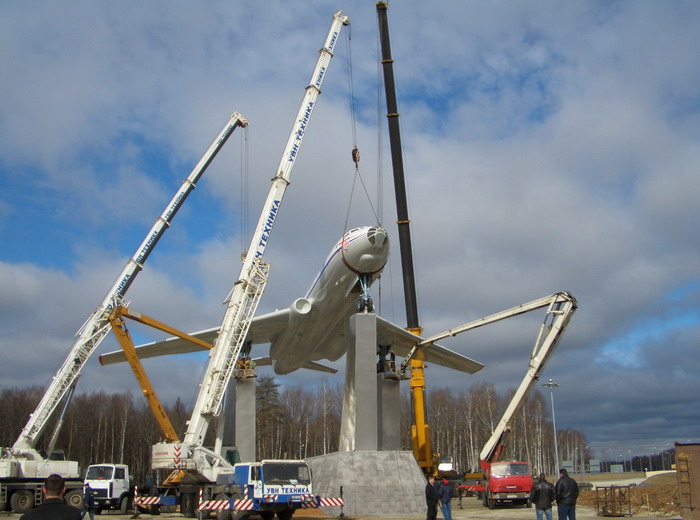 Первоначально самолет-памятник Ту-104 с бортовым номером Л-5412 был открыт на привокзальной площади аэропорта Внуково в сентябре 1976 года в честь 20-летия начала полетов. В конце апреля 2005 года самолет-памятник был демонтирован и отправлен на реставрацию на Внуковский авиаремонтный завод. Возвращение памятника состоялось в год 50-летия с начала эксплуатации Ту-104 – самолета, открывшего «реактивную эру» в мировой гражданской авиации.